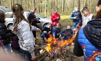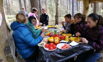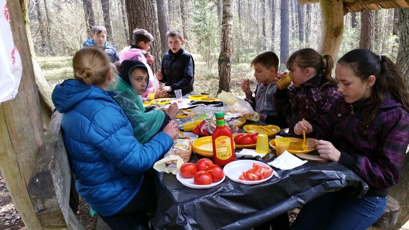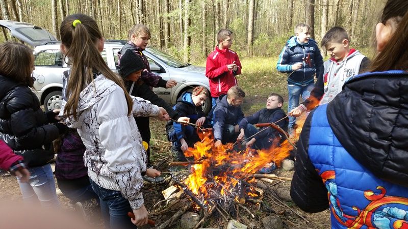 Baigus darbą, VĮ Valkininkų miškų urėdijos dėka visiems talkininkams buvo surengta iškyla. Pavėsinėje padengę stalą ir ugniavietėje užsikūrę laužą, vaikai kepė dešreles ir, skaniai užkandžiaudami, dalinosi miške patirtais įspūdžiais.