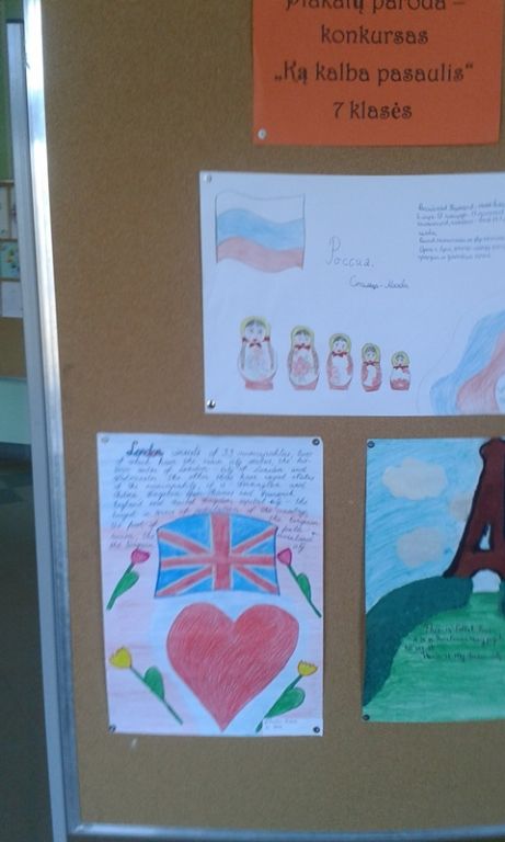 Balandžio 4-8 dienomis gimnazijoje vyko užsienio kalbų savaitės renginiai, kuriuos organizavo anglų, vokiečių ir rusų kalbų mokytojai. Renginiuose dalyvavo 2-8, IG–IIIG klasių mokiniai. Pagrindinis tikslas – sudominti mokinius užsienio kalbomis bei dar kartą priminti, kad labai svarbu mokėti užsienio kalbą. Pirmadienį ketvirto aukšto fojė mokinius pasitiko 5-8, IG kl. mokinių piešinių ir plakatų paroda „Ką kalba pasaulis“. Išrinkta net 12 geriausių darbų. O fojė lubos „ pasipuošė“ pasaulio vėliavomis, kurias kruopščiai gamino pradinių klasių mokiniai. Pirmadienį vyko užsienio kalbų savaitės atidarymas, kur mokiniai buvo supažindinti su angliškai, rusiškai ir vokiškai kalbančių šalių kultūros ypatumais bei lankytinomis vietovėmis. Antradienį 5-os klasės mokiniai dalyvavo projekte „ Letterfor a friend“. Jie pasikeitė laiškais apie save su Šalčininkų J.Sniadeckio gimnazijos mokiniais. IIIG klasė dalyvavo rusų kalbos konkurse „Умницы и умники“ , o aštuntokai - „Знаешь ли ты...?“. Šeštokai virtualioje erdvėje rungėsi bandydami įveikti klausimyną „World Countries and flags” , o 7-8 klasių anglų kalbos žinovai dalyvavo konkurse „ Creative writing“. Ketvirtadienį antrokai dalyvavo projekte „Bookmaker for an older friend“, kurio metu gamino skirtukus, o penktadienį juos padovanojo vienuoliktokams. Pastarieji pristatinėjo prezentacijas „Countriesinthe World“. 8,I – IIIG klasių mokiniai kovojo trijų kalbų viktorinoje „ Mes – kalbų ekspertai“. Penktadienį 6-7 kl. mokiniai išbandė žinias konkurse „Deutschumunsherum“, penktokai pasikartojo vokiečių kalbos abėcėlę ABC- Fest,, Waswirschonkönnen", IIG klasės mokinai paruošė stendą „Berühmte Menschen Deutschlands". Visų užsienio kalbų savaitės metu vykusių konkursų nugalėtojai buvo apdovanoti. Dėkojame visiems dalyvavusiems, sveikiname nugalėtojus ir linkime neprarasti optimizmo, priimti visus pasitaikančius iššūkius bei neužmiršti pačių įvairiausių pasaulio kalbų, nes kaip sakė J.V.Gėtė ,„Tas, kuris nemoka svetimų kalbų, nesupranta ir savosios‘‘. Emilija Zuzienė, anglų kalbos vyr.mokytoja {uzsienio_savaite}