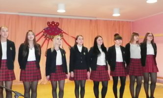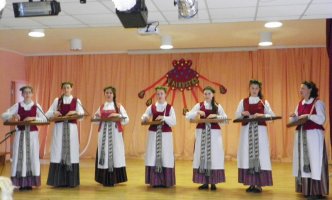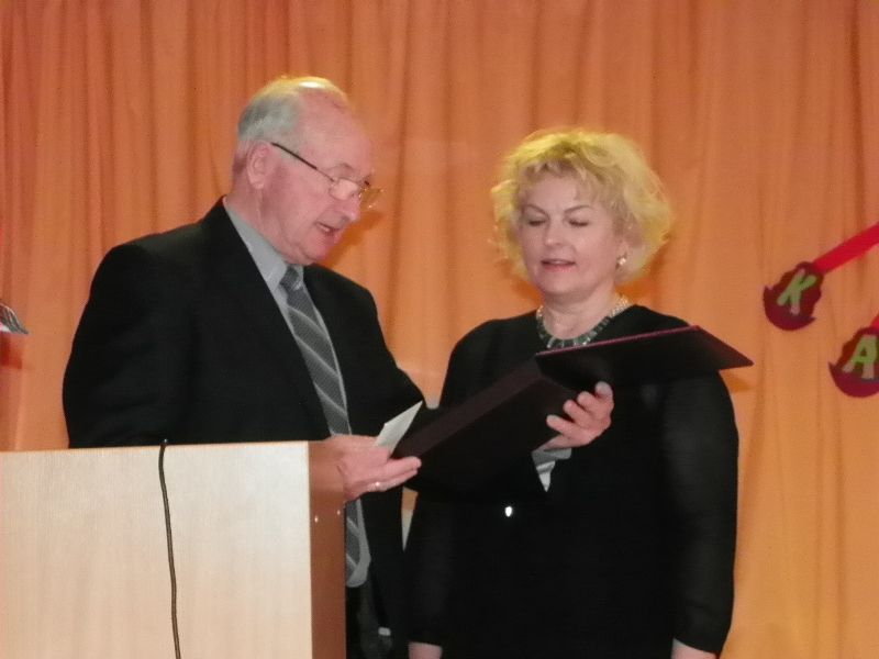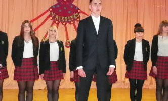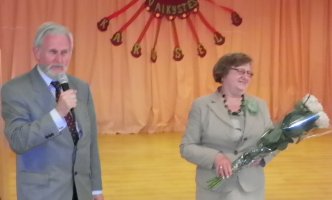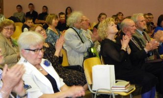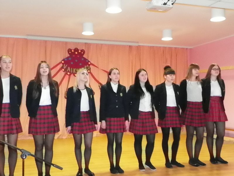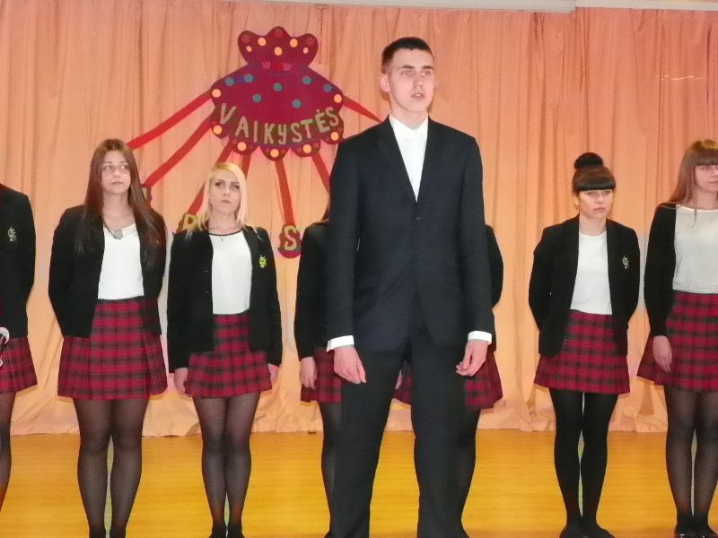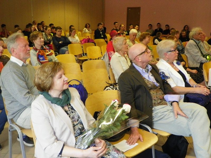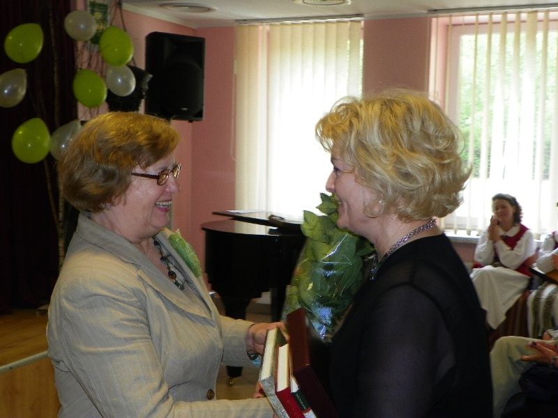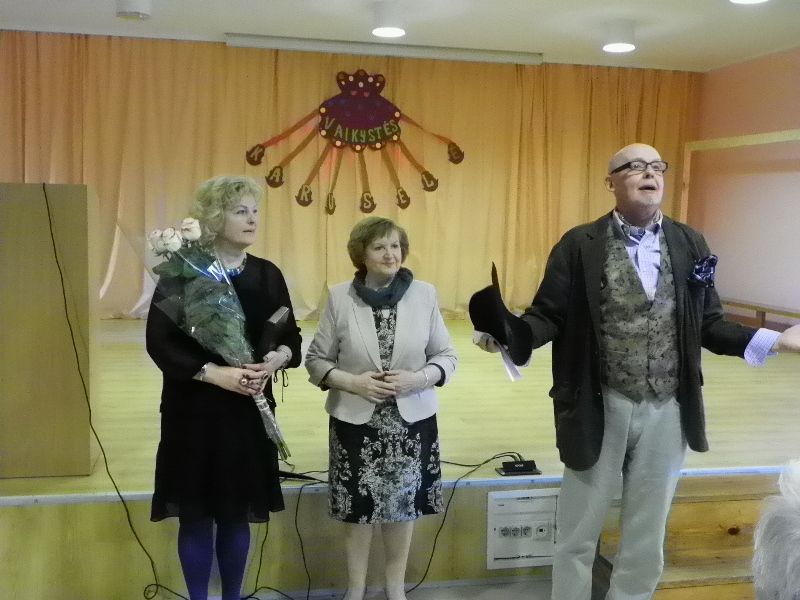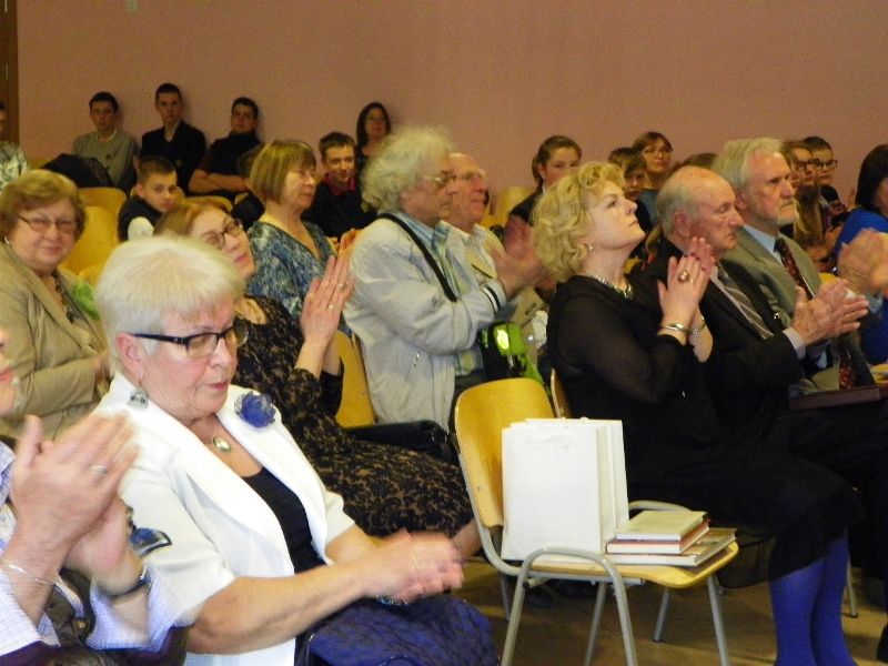 Stanislovo Rapolionio premijos laureatę sveikino Stanislovo Rapolionio gimnazijos direktorė D.Zuzo, gimnazijos folkloro ansamblis “Versekėlė”, kiti gimnazistai.