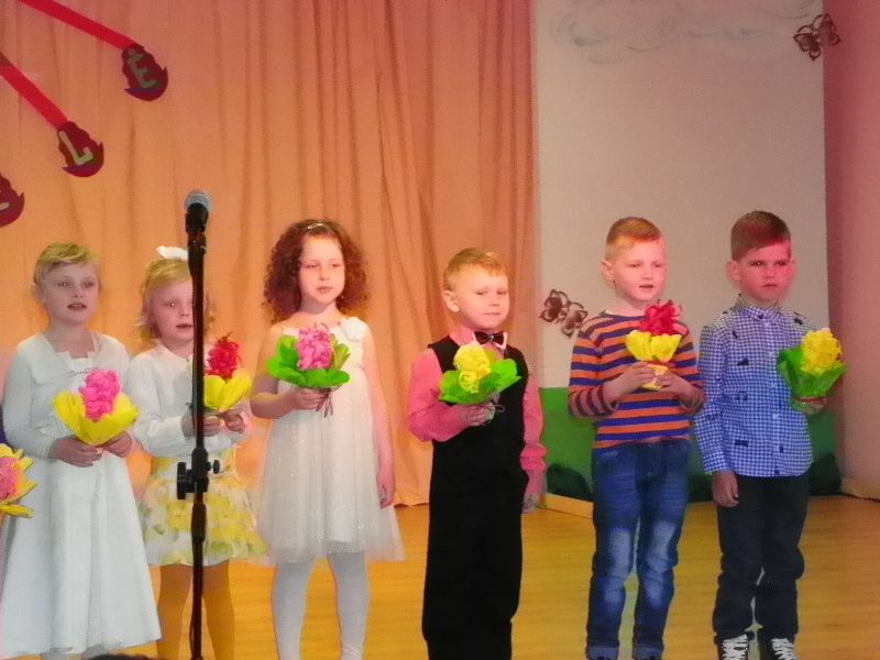 Susirinkusias mamas pasveikino gimnazijos direktorė D.Zuzo. Palinkėjo sveikatos, gražių, saulėtų dienų ir daug daug meilės bei stiprybės. Abiturientas V.Leikauskas skaitė: