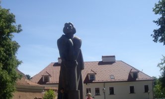Išėję iš bažnyčios pasukome prie poeto A. Mickevičiaus paminklo ir šalia jo nusifotografavome.