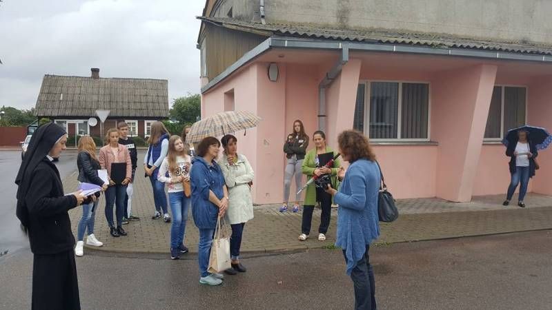 Kai šių metų pavasarį pradėjau planuoti projekto veiklas, žinojau, kad Eišiškėse gyveno žydai. Žinojau, kad dabar jų šiame mieste nebeliko. Kai pradėjau domėtis šia tema, staiga supratau, kad ženklų, liudijančių jų buvimą, apstu: pradedant nuo miesto išplanavimo ir baigiant gausybe pastatų Vilniaus, Rodūnės, Raubiškių gatvėse ir aplinkui miesto aikštę. Pasiūliau 6- 8, IG klasių mokiniams nupiešti Eišiškes prieš Antrąjį Pasaulinį karą. Tai nebuvo lengva užduotis. Mokiniams teko paieškoti archyvinių nuotraukų ir atidžiau įsižiūrėti į išlikusius nekilnojamo paveldo objektus, surasti būdingus bruožus ir įsivaizduoti, kaip galėtų atrodyti eilinė diena nedideliame miestelyje, Stetle Eishishok. Darbai pradžiugino. Mokiniai piešė žaidžiančius vaikus ir apie Eišiškių sinagogą verdantį gyvenimą, kažkur per akmenimis grįstą gatvę riedantį vežimą ir karčiamos šeimininką, pasitinkantį svečius, kaimynes, trumpam sustojusias pasidalinti paskutinėmis naujienomis ir mergaitę, glaudžiantį prie krūtinės kačiuką. Ramus, taikus, paprastas gyvenimas...Tai kas gi jiems rūpėjo, kokių tradicijų laikėsi, kokia kalba kalbėjo? Atsakymų į šiuos klausimus nuvykome ieškoti į Vilnių.