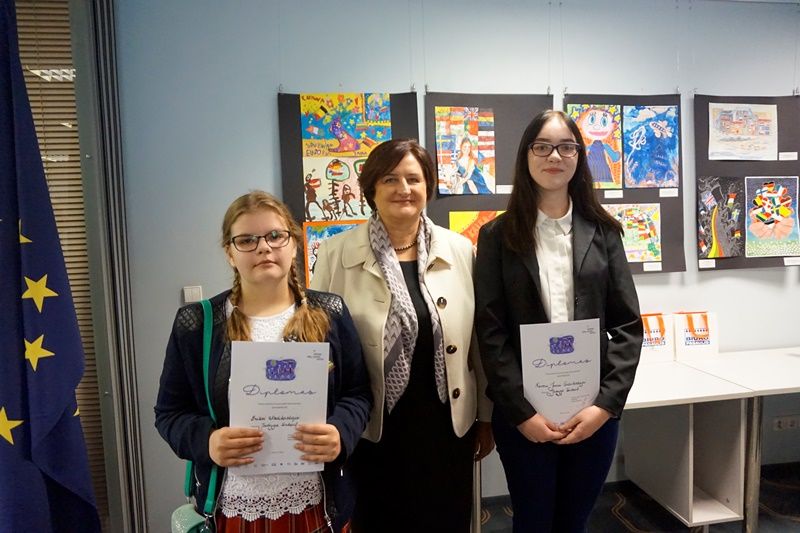 Rugsėjo 26 dieną jaunieji dailininkai buvo apdovanoti laureato arba I, II ar III vietų diplomais. Konkurse dalyvavo nemažai mūsų gimnazijos mokinių , tačiau tik dviem pavyko patekti į geriausiųjų dešimtuką - 7 klasės mokinei Erikai Meduševskajai ir IIIG klasės mokineiVanesai Joanai Gabrilevskajai. Šios mokinės buvo apdovanotos laureatų diplomais ir turėjo galimybę nusifotografuoti šalia LR Seimo pirmininkės Loretos Graužinienės. Laureates sveikino mokytoja Jadvyga Sinkevič bei mes, devintokai, Karolina Dubravska ir Rafal Sobolevskij. Po apdovanojimo apžiūrėjome gražiausius parodos piešinius, padiskutavome apie jų meniškumą ir kupini gerų įspūdžių važiavome namo.
