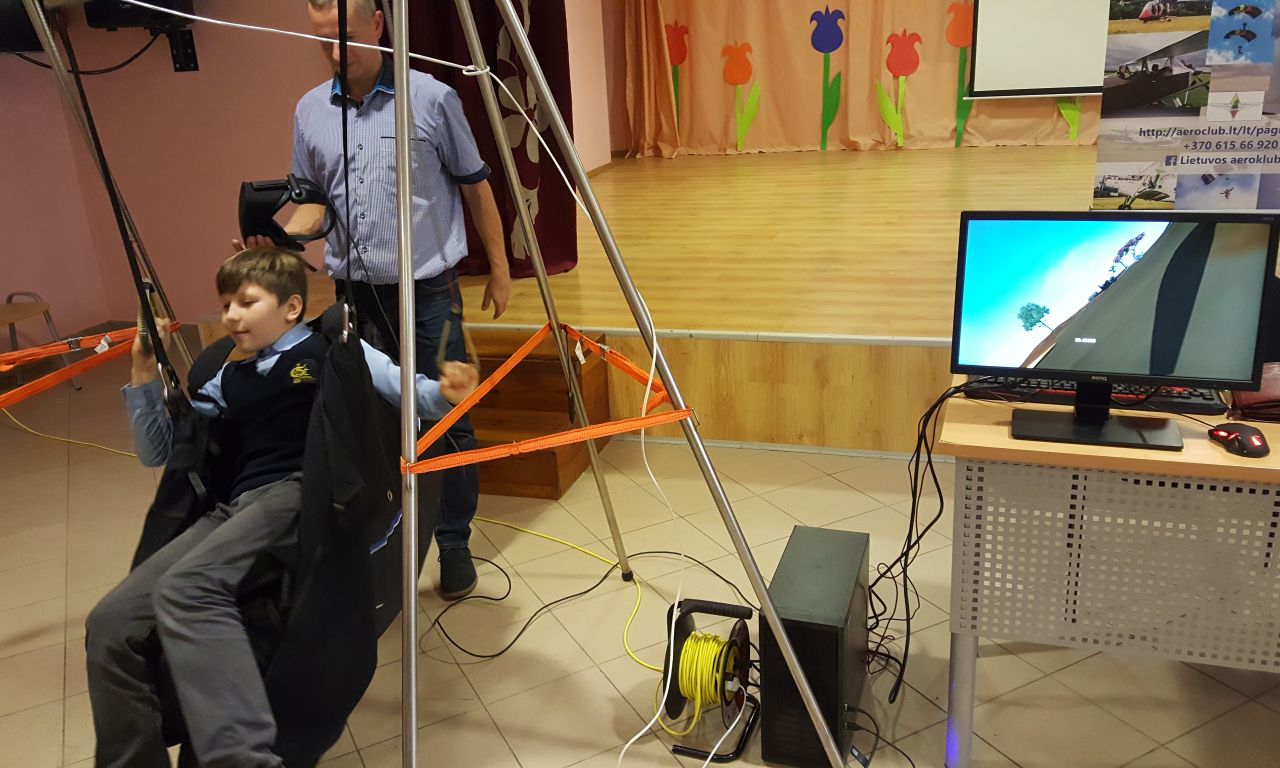 Spalio 18 d. mūsų gimnazijoje lankėsi Lietuvos aeroklubo atstovai, kurie vykdo Jaunojo aviatoriaus programą. Susitikimo metu 4-6 klasių mokiniai turėjo galimybę susipažinti su aviacija, lakūno profesija. Kiekvienas mokinys išbandė save - „paskraidė“ parasparniu, pamatė žemę iš paukščio skrydžio.