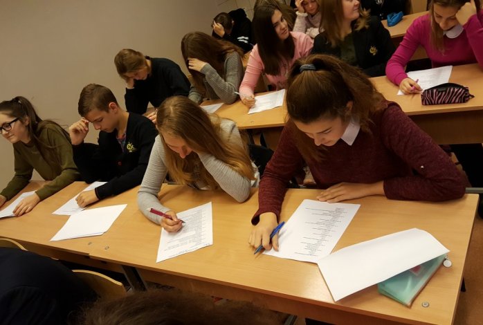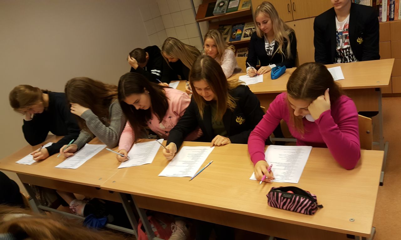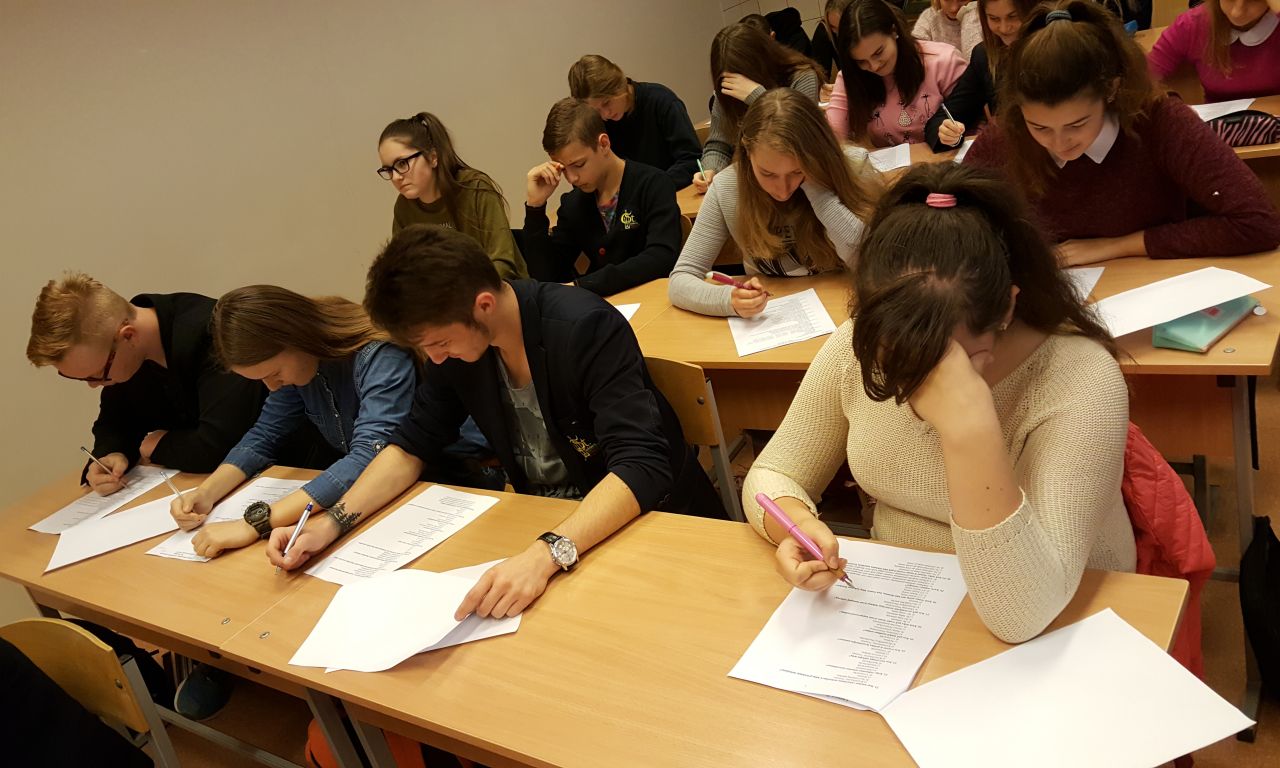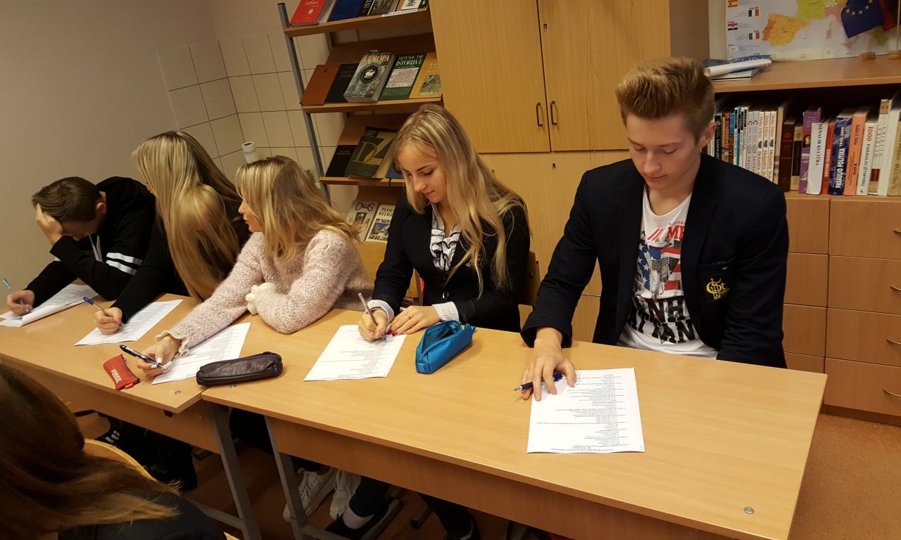 Konstitucijos egzamine dalyvavo 34 mūsų gimnazijos 6-8, I-IVG klasių mokiniai. Maksimalų taškų skaičių surinko ir II ture dalyvaus septintokai Patrcija Miliun (27 taškai) ir Nortas Barutis (25 taškai).