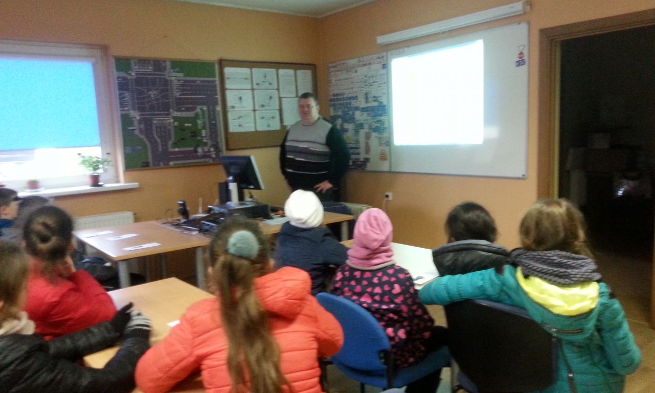 Spalio 23 dieną penktokus su mokytoja M.Nikrevič ir socialine pedagoge T.Babkina svetingai pasitiko vairavimo mokyklos savininkė S.Petiukonienė. Mokyklos dėstytojas labai vaizdingai papasakojo, kaip saugiai pereiti pėsčiųjų perėją, saugiai važinėti dviračiu ir daug kitų naudingų dalykų, atsakė į visus mokinių klausimus.