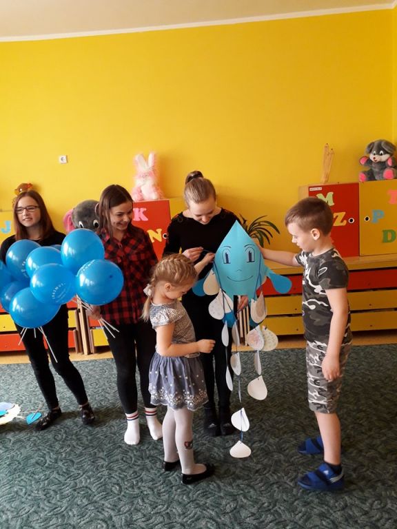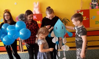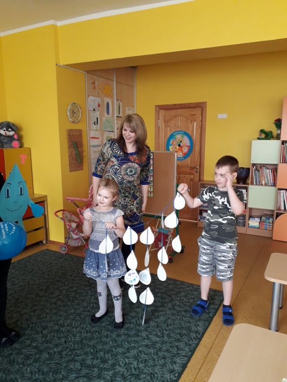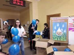 Kovo 22-osios dienos rytą visus ateinančius į gimnaziją mokinius bei mokytojus pasitikome su „vandens lašeliu“ - balionu ir praktiškais patarimais, kaip taupyti vandenį. Gimnazijos fojė vyko plakatų „Vanduo – gyvybės šaltinis“, kuriuos piešė mokiniai minėdami Žemės dieną, paroda. Vėliau svečiavomės Eišiškių lopšelio darželio „Žiburėlis“ Bitučių grupėje. Darželinukams papasakojome apie vandens naudą, apie vandens lašo gyvenimą ir paaiškinome vandens taupymo svarbą. O mažieji mūsų draugai Lašeliui padovanojo lašiukų girliandą ir eilėraštuką apie vandenį. Vaikai savo nuostabai sužinojo, kad pasaulyje yra vietų, kur vanduo brangesnis už auksą. Todėl pažadėjo mums atsakingai naudoti vandenį, jį taupyti.