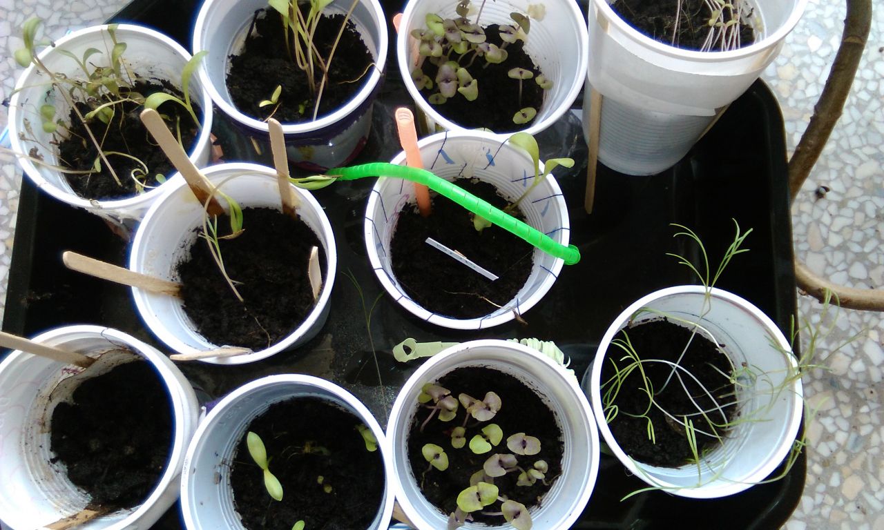 Kai išmokome rūšiuoti šiukšles, buvome pakviesti į kūrybines dirbtuvėles, kur mokiniai greitai ir kūrybingai iš įvairių panaudotų daiktų pasigamino interjerui papuošti vazonėlius, į kuriuos pasėjo gėlytes. Savo darbelius parsinešė į klasę.