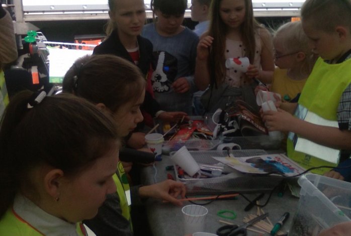Mokiniams labai patiko ,, Namas ant ratų“, kuriame visi baldai, aksesuarai, interjero detalės pagamintos panaudojant nereikalingus daiktus t. y. senas keptuves, lagaminus...