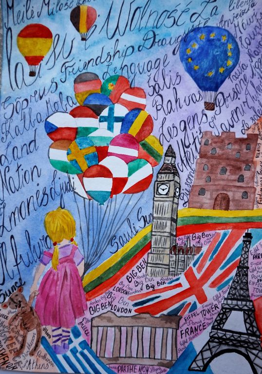 Parodoje „Europa ir daugiakalbystė“ eksponuojami 52 geriausi piešinių konkurso darbai. Konkursui piešinius pateikė 312 dalyvių 4 amžiaus grupėse nuo 3 iki 19 metų.