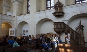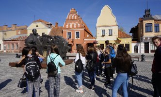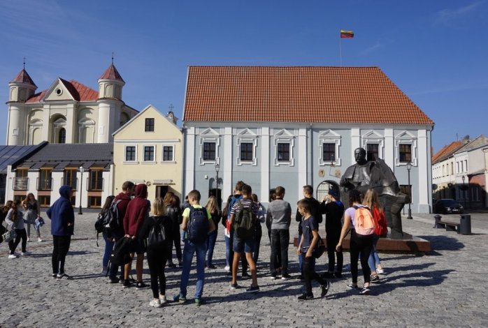 Vėliau ekskursija persikėlė į miesto gatves. Buvo įdomu surasti ir atpažinti žydų namams būdingus bruožus. Didžiosios rinkos aikštėje apžiūrėjome paminklą didikams Radviloms, pasigrožėjome senamiesčio pastatais. Aplankėme Evangelikų reformatų bažnyčią ir didikų Radvilų mauzoliejų. Galėjome palyginti, kaip skiriasi katalikų ir reformatų bažnyčios apdaila.