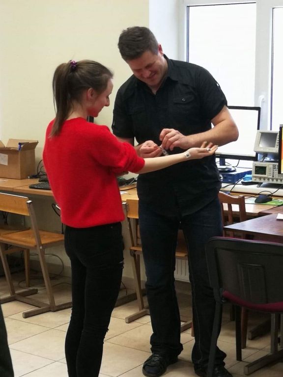 Vėliau mokiniai dalyvavo paskaitoje apie biomedicininius ir bioninius įtaisus bei jų valdymą, lankėsi MF Medicininės ir reabilitacinės technikos laboratorijoje. Šiuolaikinė medicininė ir reabilitacinė technika jau padeda maksimaliai atkurti žmogaus organizmo funkcijas ir neįgaliesiems integruotis į visuomenę. Tokia technika plačiai naudojama gydymo, terapijos ir reabilitacijos centruose, o ją projektuoja ir kuria biomechanikos inžinieriai, kuriems rengti ir skirta ši studijų programa. Išmaniąsias biomechanikos technologijas pristatė MF Medicininės ir reabilitacinės technikos laboratorijos vedėjas Gintaras Jonaitis.