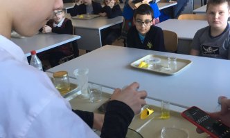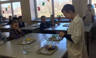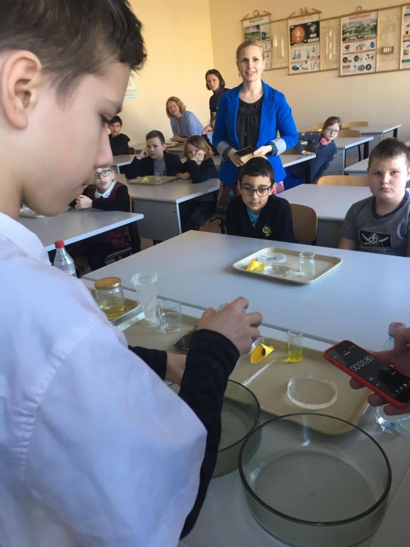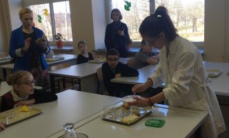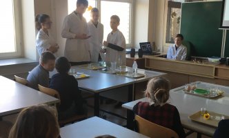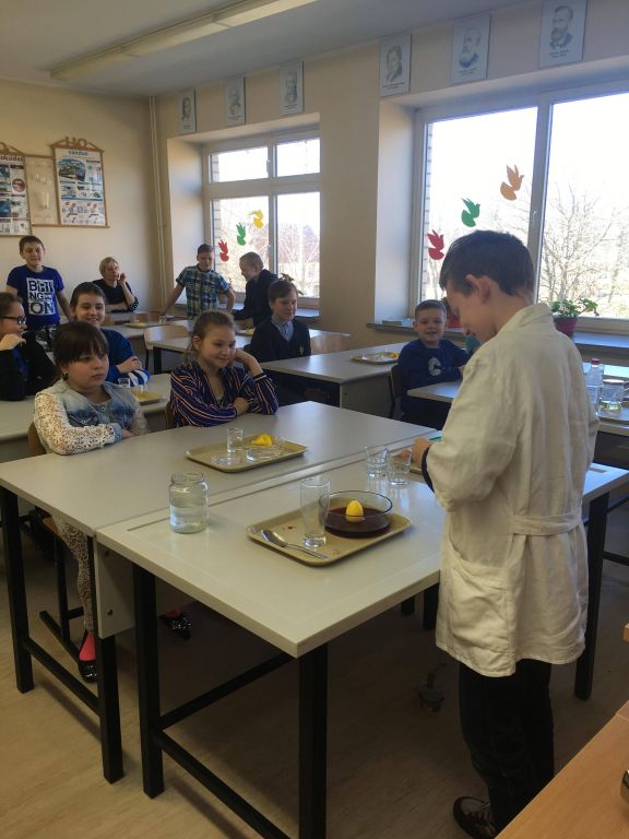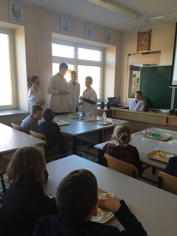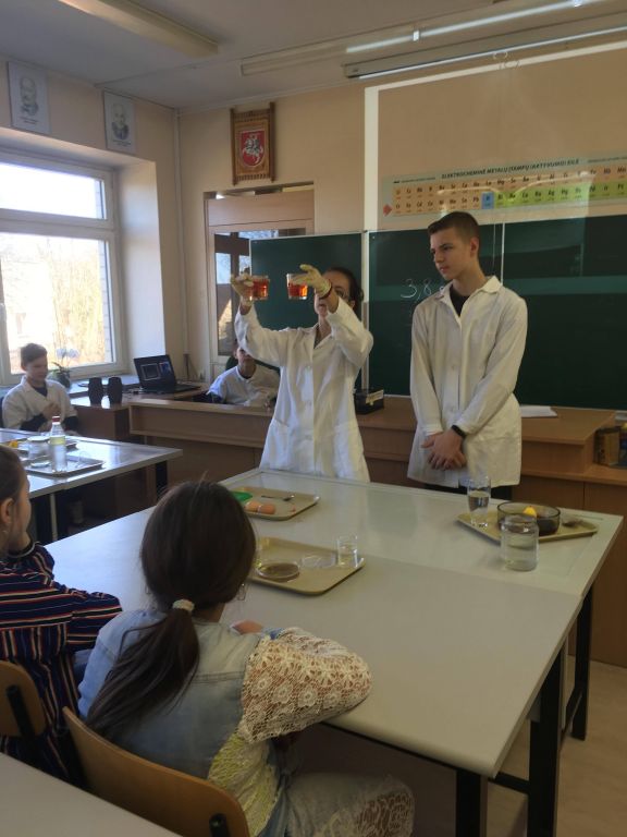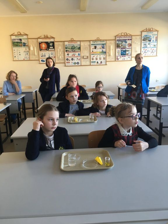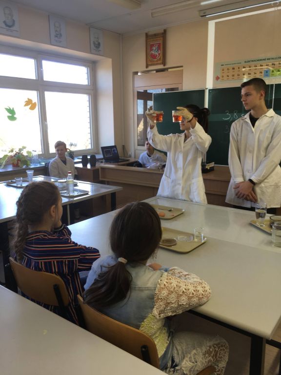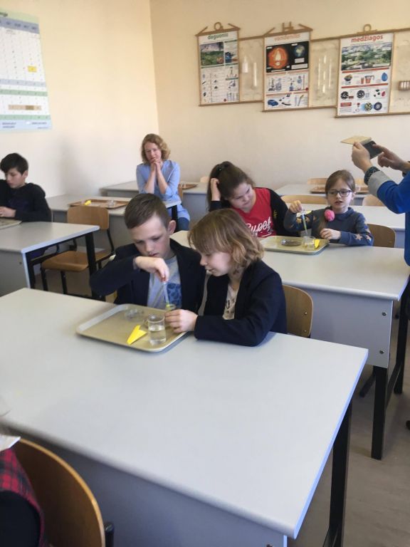 Chemijos kabinete vyko pasaulio pažinimo pamokos pradinukams - trečių ir ketvirtų klasių mokiniams. Pamokas vedė projekto „Love every drop“ dalyviai. Jie paruošė įdomius eksperimentus su vandeniu, kurių metu atskleidė vandens savybes.