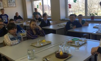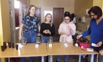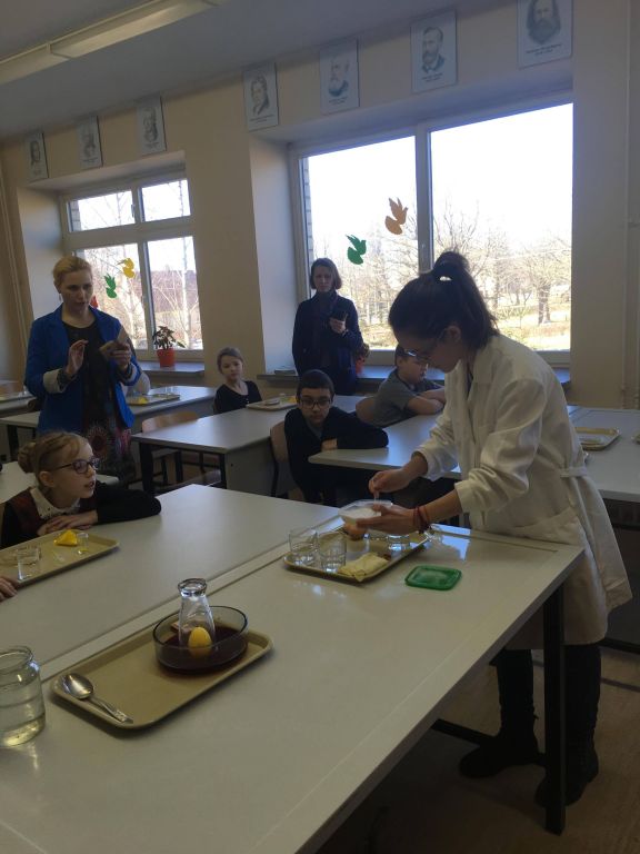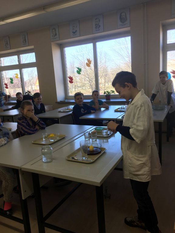 Kiti projekto dalyviai eksperimentavo prie valgyklos. Visiems norintiems buvo siūloma paragauti 4 rūšių vandens: virinto vandens su citrina, mineralinio negazuoto, mineralinio gazuoto ir vandentiekio vandens. Nežinant kokį vandenį ragauja, siūlyta įvertinti ragaujamo vandens skonį ir balsuoti už skaniausią vandenį. Suskaičiavus balsavimo rezultatus, paaiškėjo, jog mūsų gimnazijos bendruomenei skaniausias vanduo– mineralinis negazuotas vanduo.