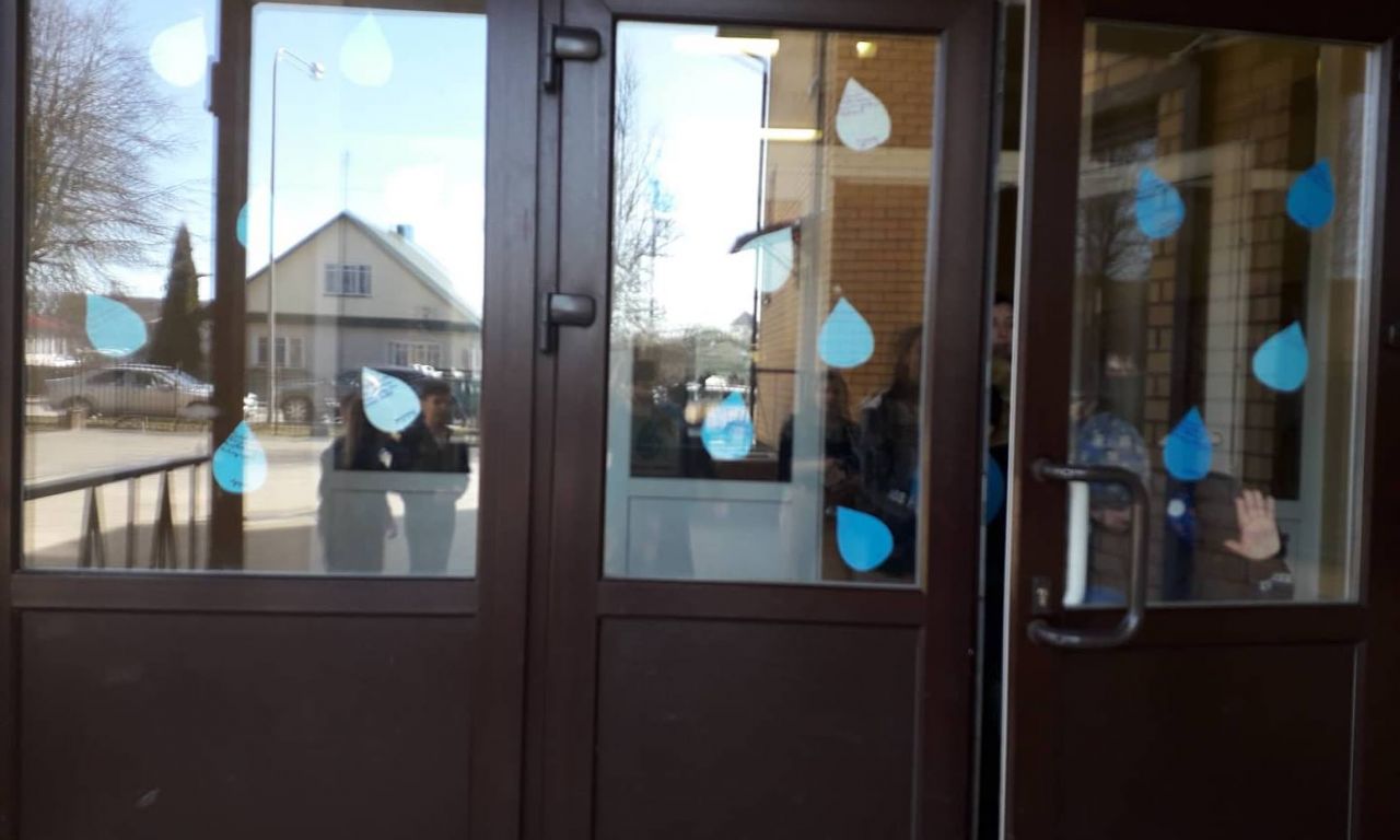 Vandens dienos išvakarėse visos klasės paruošė savo žinutes vandeniui, užrašė jas ant iš mėlynos spalvos popieriaus iškirptų „vandens lašelių“ ir priklijavo ant langų gimnazijos koridoriuose. Be to, projekto dalyviai pristatė savo piešimo ant vandens piešinių parodą.
