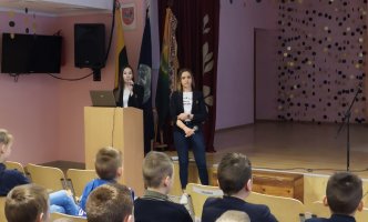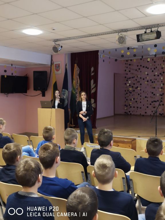 Kovo 26 d. IIGa klasės mokinės Karina Jotko ir Ugnė Kiriuškinaitė, bendraamžių švietėjų - jaunimo lyderių ugdymo programos dalyvės, turimomis žiniomis apie saugų elgesį internete pasidalino su 5-7 klasių mokiniais. „Ar tikrai tai, ką aš darau viešoje erdvėje galiu žinoti tik aš? Ar mano Facebook‘o puslapiu niekas negali pasinaudoti nusikaltimams vykdyti?“ Šie ir kiti klausimai buvo nagrinėjami karštoje diskusijoje.