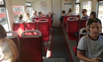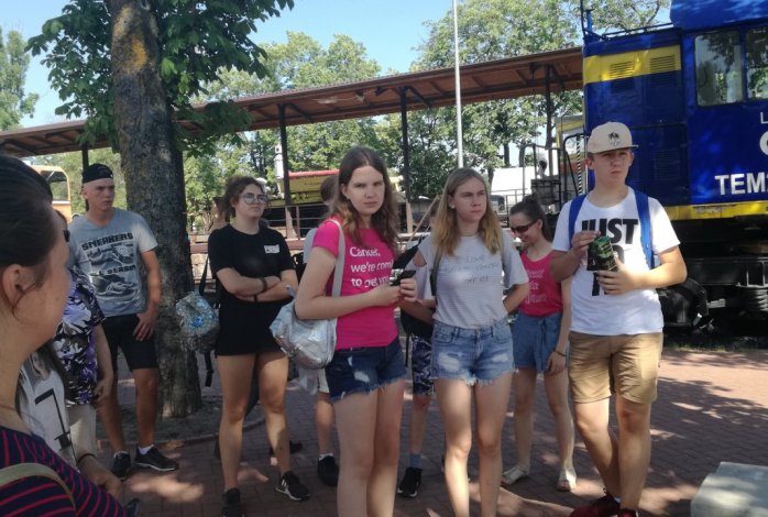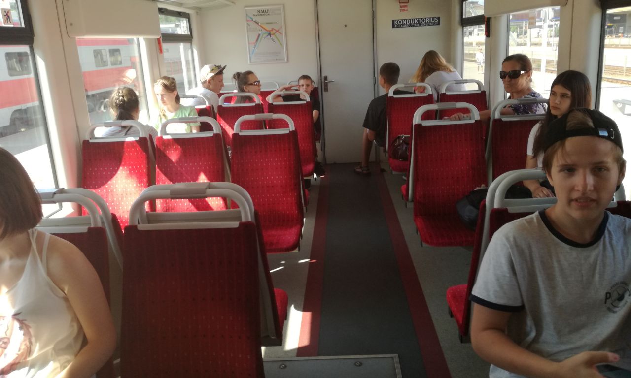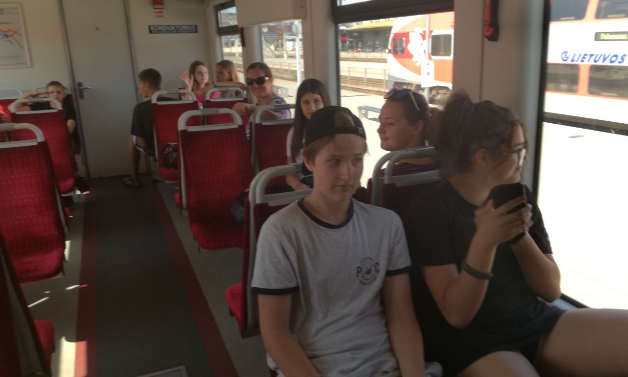 Birželio 12 dieną grupė 7, 8, II Gb klasių mokinių ir muziejininkų būrelio „Atmintis“ narių vyko į ekskursiją į Vilnių. Nors svilino karštis, bet mes gerai nusiteikę pasiekėme „Geležinkelio muziejų“. Kai kuriems vaikams tai buvo pirmoji pažintis su geležinkelio transportu. Buvo smagu iš arti pamatyti traukinį, išgirsti pasakojimus apie tai, kokie anksčiau buvo garvežiai, vagonai, kaip buvo reguliuojamas judėjimas. Muziejuje mokiniai gavo užduotis ir turėjo rasti įvairias traukinio detales. Tai atlikę, žiūrėjome filmukus apie saugų elgesį prie geležinkelio ir traukinyje. Po to traukiniu vykome į oro uostą ir atgal, pakeliui stebėdami traukinių remonto, formavimo depus. Kai kurie važiavo traukiniu pirmą kartą,
