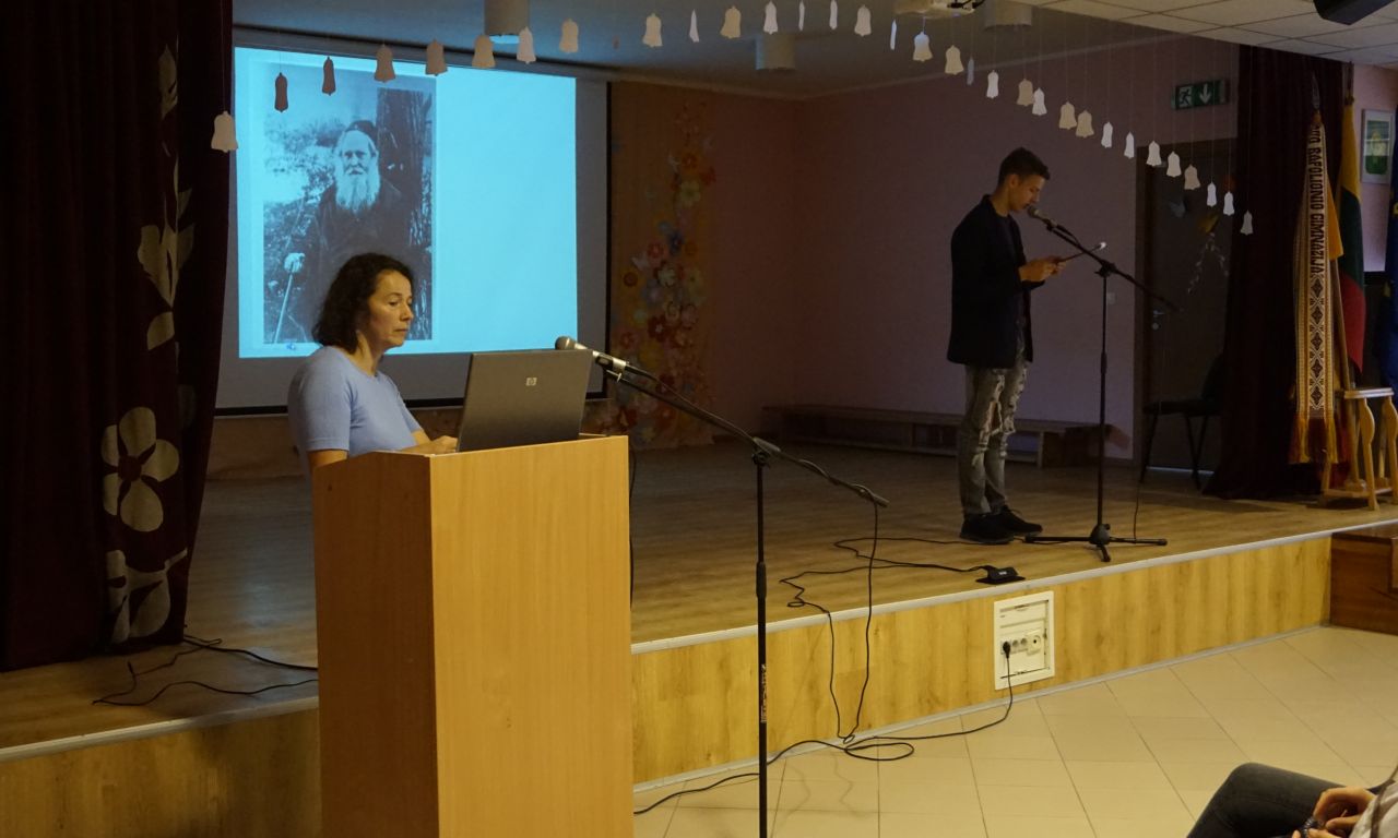 Eišiškių bendruomenę kvietėme ir į gimnazijos aktų salę, kur pranešimą apie žydų kultūrą ir nedidelio žydiško miestelio kasdieninį gyvenimą pristatė projekto vadovė Jadvyga Sinkevič.