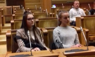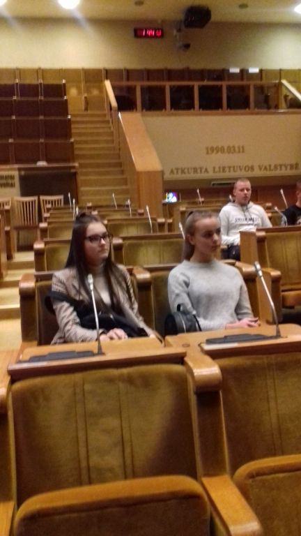 Pilni įspūdžių po 2,5 val. užsiėmimų bei praktinės veiklos VGTU, išvykome į pažintinę ekskursiją į Lietuvos Respublikos Seimą. Ekskursija prasidėjo Spaudos konferencijų salėje – vienoje iš svarbiausių Seimo salių. Būtent čia Seimo nariai duoda interviu žurnalistams, rengiamos spaudos konferencijos. Vėliau gimnazistai apžiūrėjo Konstitucijos salę, Algirdo Mykolo Brazausko salę, kur priimamos svečių delegacijos. Apsilankė ir triaukštėje Posėdžių salėje: pirmas aukštas skirtas tik Seimo nariams, antrasis - lankytojams, trečiasis - tik techniniams darbuotojams. Gimnazistai pabuvojo ir garsiojoje Kovo 11 - osios Akto salėje, kur ir buvo priimtas šis dokumentas. Mums papasakojo, kad būtent šioje salėje vyksta pagrindinės Lietuvai svarbios šventės ir minėjimai, būtent šioje salėje naujai išrinkti Seimo nariai duoda priesaiką. Smagu buvo apžiūrėti ir Prezidento salę, šalia kurios iškabinti visi buvusių Seimo pirmininkų portretai. Kelionė į Lietuvos Respublikos Seimą buvo išties įdomi ir svarbi.