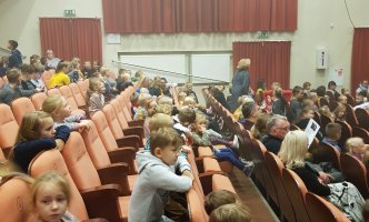 Spalio 17 dieną po dviejų pamokų 1 b kl. mokiniai vyko į X režisierės Dalios Tamulevičiūtės profesionalių teatrų festivalį Varėnoje, žiūrėjo Alytaus miesto teatro spektaklį vaikams „Skrudžo gatvės angelai“, sukurtą pagal Daivos Čepkauskaitės pjesę „ Skrudžas arba diena, kai galima atverti širdį“.