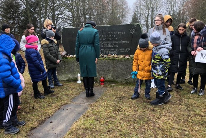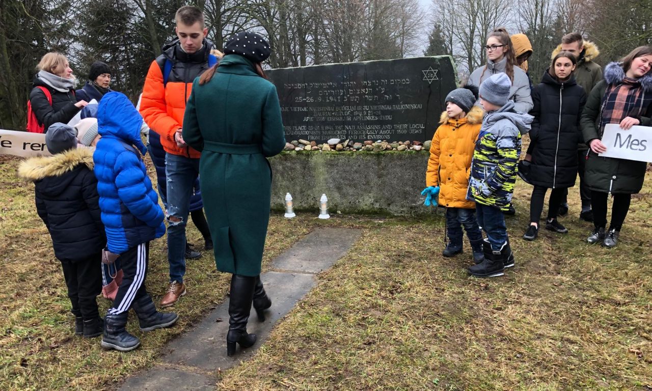 Mūsų gimnazijos bendruomenė prisijungė prie šios akcijos. Sausio 27–ąją 2a ir IIG klasių mokiniai kartu su gimnazijos direktore D.Zuzo, mokytojomis E.Leveckiene, J.Sinkevič, L.Jurgelevičiene Holokaustą minėjo Eišiškių vyrų žydų aukų kapinėse. Į kapines nunešėme akmenukus ir žvakes. Akcijoje „Mes prisimename“ (We remember) dalyvavo ir Šalčininkų r. mero pavaduotoja B.Petkevič bei Eišiškių miesto seniūno pavaduotojas V.Sliževski.