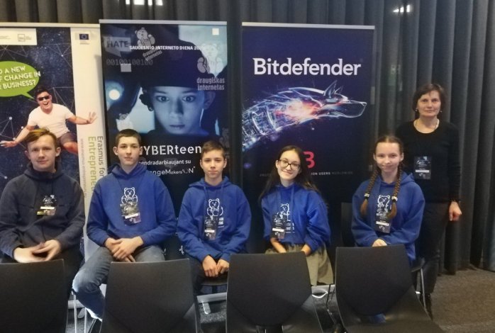 Vasario 11 dieną gimnazijos 8 klasės mokinių komanda „Internautai“ Aistė Malinovska, Kotryna Sobolevskaja, Jaroslav Kozarin, Romas Talmontas, Lukas Verseckas dalyvavo Tarptautinės saugesnio interneto dienos 2020 minėjime Kauno Žalgirio arenoje, kur buvo siūloma pažvelgti į kibernetinį pasaulį kitu kampu ir su ekspertų pagalba kūrybinėse dirbtuvėse CYBERteens sukurti ir pristatyti saugesnio interneto idėją. Komandos idėja — sukurti interneto dirbtinio intelekto asistentą-gidą, kuris paaiškintų vaikams ar nepatyrusiems vartotojams nesaugaus elgesio internetu pasekmes. Komandos veiklą pristatė Romas Talmontas.