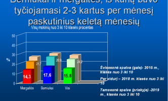 2019 m. lapkritį visi mūsų gimnazijos 3-10 klasių mokiniai dalyvavo kasmetinėje OLWEUS apklausoje apie patyčias. 2020 02 13 d. gimnazijos OPKUS veiką kuruojanti ir prižiūrinti instruktorė Jurgita Večerskienė pristatė šio tyrimo rezultatus. Ta proga susirinko OLWEUS MSG vadovai bei OLWEUS koordinacinis komitetas. Džiaugiamės, kad nuo OLWEUS PPP diegimo pradžios, kuomet pirmą kartą dalyvavome šiame tyrime ir iki dabar mūsų gimnazijoje patyčių lygis sumažėjo net 42 proc.!Vis daugiau mokinių supranta, kad tiesiog stebėti vykstančias patyčias yra blogai ir vis mažiau atsiranda norinčių tyčiotis iš nepatinkančio jiems asmens. Pusė apklaustųjų mokinių tvirtina, kad jų klasės vadovas padarė daug ir labai daug dėl to, kad klasėje nebūtų patyčių tarp mokinių. Tyrimas atskleidė ir spragas, kurias likviduoti turėsime visi kartu, kad ir toliau išdidžiai galėtumėme vadintis „OLWEUS MOKYKLA“.