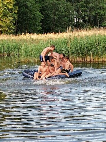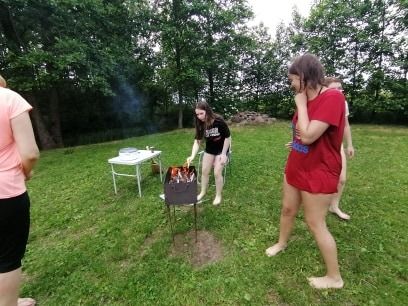 Statėme palapines, o kas nemokėjo išmoko, žaidėm tinklinį, futbolą, maudėmės, deginomės saulėje, žvejojome, kepėme šašlykus/dešreles..... O vakaro šokiai ant akmens.... Joninių išvakarėse kūrenome didelį laužą, drąsesni berniukai šokinėjo per laužą, mergaitės pynė vainikus. Paparčio žiedo nesuradome, ėjome palydėti saulės, nes dangus buvo purpurinės spalvos. Argi kas nors patikės, jeigu pasakysim, kad 2 valandą nakties dainavome prie laužo, o 6 valandą ryto maudėmės, 7 valandą žaidėme tinklinį... Emocijos ir juokas tiesiog liejosi.