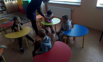 Užsiėmimą pradėjo klausimu: „Kodėl reikia plauti rankas?“. Vaikai drąsiai atsakinėjo, pasakojo, kodėl jie plauna, kada ir kaip plauna rankas. Išsiaiškinę, kad ant neplautų rankų kaupiasi bakterijos, mokėsi rankas plauti dar taisyklingiau.