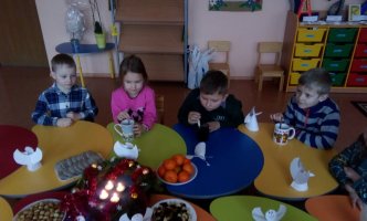 Gruodžio 11 d. priešmokyklinio ugdymo grupėje skambėjo adventinės giesmės. Ši diena prasidėjo kitaip nei įprasta. Šiandien – adventinė popietė. Mums labai pasisekė- lauke prisnigo sniego, jautėsi šventinė nuotaika. Susitvarkę savo žaislus susėdome prie bendro apvalaus stalo.