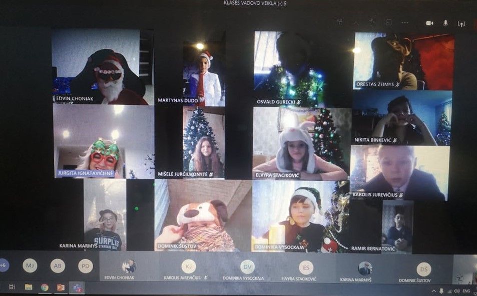 Gruodžio 18 dieną 5–7 klasių mokiniai dalyvavo kalėdinėse klasių valandėlėse nuotoliniu būdu. Mokiniai su savo klasių vadovėmis susitiko Teams ir Zoom platformose. Mokiniai buvo pasipuošę, susikūrę šventinę Kalėdinę atmosferą, gerai nusiteikę. Klasės bendruomenės linksmai bendravo, pasidalino savo šeimų Kalėdų šventimo tradicijomis, papasakojo be ko neįsivaizduoja šv. Kūčių, Kalėdų ir Naujųjų metų švenčių. Aptarėme ir tai, kaip visuotinis karantinas keičia mūsų planus švęsti šventes.
