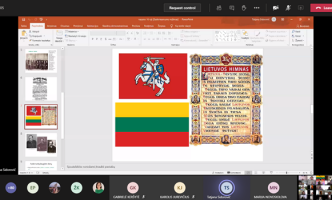 Vasario 16-oji – nacionalinė Lietuvos šventė. Tai diena, skirta 1918-aisiais Lietuvos Tarybos signatarų pasirašytam Lietuvos nepriklausomybės aktui paminėti. Mūsų gimnazijos bendruomenė Vasario 16-ąją švenčia kasmet. Šiemet šią šventę minėjome prieš mokinių Žiemos atostogas – vasario 12-ąją. Ikimokyklinių ir priešmokyklinės grupių vaikai, kurie ugdomi gimnazijoje, išmoko dainelių, eilėraščių. Mokytojų padedami lietuviška simbolika papuošė gimnazijos langus. Kiti mokiniai renginiuose dalyvavo nuotoliniu būdu. Pradinių klasių mokiniai dainomis, posmais, nuoširdžiais žodžiais sveikino Lietuvą su jos gimtadieniu. Vyresnieji mokiniai prisiminė mūsų krašto istoriją, žiūrėjo dokumentinį filmuką „Pasivaikščiojimas po Vilnių Vasario 16-osios Akto signatarų keliais“, skaitė poeziją apie Lietuvą, grožėjose gimtojo krašto vaizdais žiūrėdami mokytojų paruoštą filmuotą medžiagą.