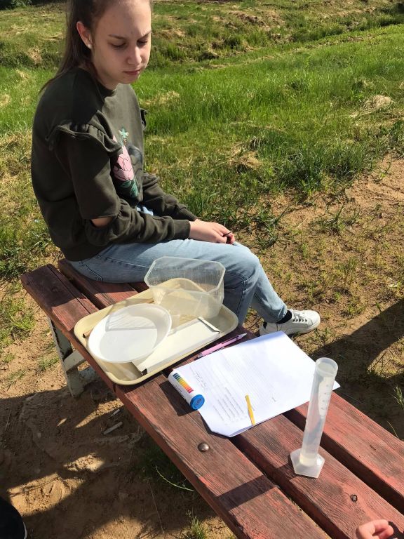 Atėjus vasaros šilumai, visi traukia pailsėti prie vandens telkinių. Eišiškių miestelis turi savo mažą vandens telkinuką – vietinių vadinamą „baseika“. Bet ar saugu čia maudytis? Netradicinės pamokos metu, nusprendėme tai patikrinti su 7-tos klasės mokiniais ir atlikome vandens būklės tyrimą. Matavome vandens temperatūrą, pH, nitritų ir nitratų kiekį bei vandens drumstumą. Tyrėme dumblo rūšinę įvairovę, ieškojome vandens bioindikatorių. Radome: laumžirgių lervų, apsiuvos lervų, ovalinių geldučių, geltonkraštę dusią, uodų lervų, tubifeksų. Stebėdami pro mikroskopą, radome titnagdumblių bei šoniplaukių.