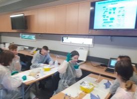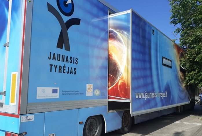 Mūsų gimnazija birželio 10 d. tapo mokslu besidominčių jaunuolių traukos centru – į gimnazijos kiemą užsuko neįprastas modernios mokslinės įrangos prikrautas vilkikas „MoMoLab“. Tai mobilioji mokslinė laboratorija, kuri sudomino 8-10, I-IIIG klasių mokinius. Jaunuoliai noriai dalyvavo mokslinėje –praktinėje veikloje - projekte: „Mokinių gebėjimų atskleidimo ir jų ugdymo sistemos plėtra“. Mokslininkai, atvykę su šia mobiliąja laboratorija, pristatė STEAM mokslų įdomybes. Mokiniai dalyvavo mikrobiologijos ir fizikinių reiškinių tiriamosiose veiklose.