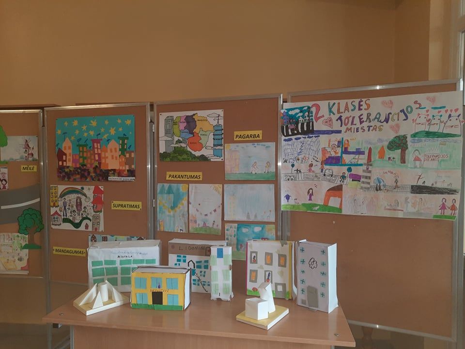 Lapkričio 16 dieną minėjome Tolerancijos dieną. Šiais metais Tarptautinės Tolerancijos dienos simbolis – MIESTAS. Klasių vadovai klasių valandėlių metu diskutavo su mokiniais, kas yra tolerancija? Kas man yra tolerantiškas miestas? Ką norėčiau matyti tolerantiškame mieste? Ko neturėtų būti tolerantiškame mieste? Mokiniai piešė, vaizdavo, statė tolerantiškus miestus, darė ir tolerantiškų miestų koliažus. Per pertraukas skambėjo dainos apie draugystę.