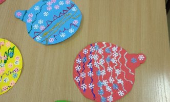 Biblioteką savo sukurtais darbeliais papuošė 3a klasės mokiniai.