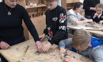 Technologijų mokytojas Gintaras Turonis organizavo kūrybines dirbtuves „Senovinio žaisliuko gamyba“ . Buvo smagu matyti vaikus kartu su tėvais gaminančius medinius žaisliukus.