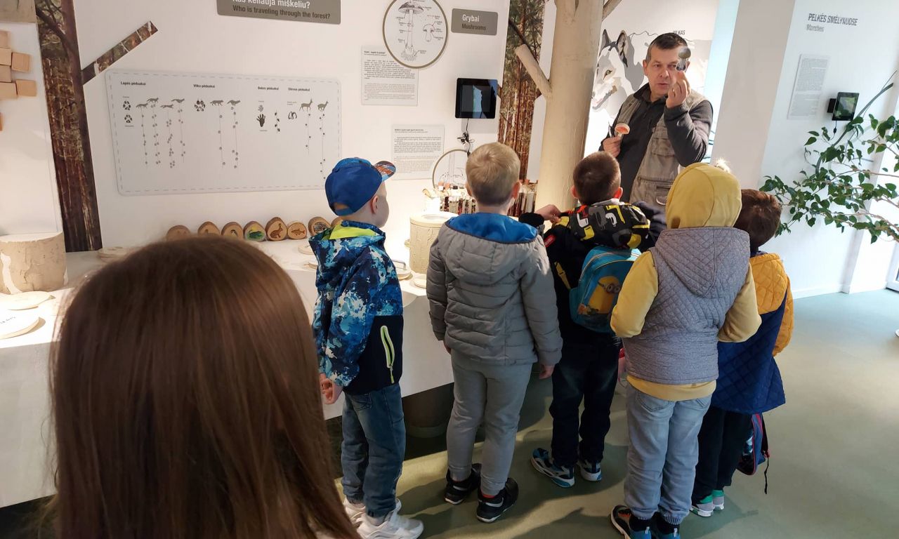 Atvykusius į Marcinkonių lankytojų centrą mus pasitiko gidas, kuris papasakojo apie centre įkurtą ekspoziciją „Girių apsuptyje“. Vaikai galėjo ne tik apžiūrėti įvairias ekspozicijas, bet ir paklausyti paukščių garsų pamėgdžiojimų, smėlyje įspausti įvairių gyvūnų pėdas, atspėti, kokio tai gyvūno pėdsakas. Apžiūrėję ekspozicijas, važiavome iki Zackagirio pažintinio tako, kur teko apie 1 km keliauti miško taku pėsčiomis. Šio pasivaikščiojimo tikslas - pamatyti aukštapelkę, kopas be jūros.