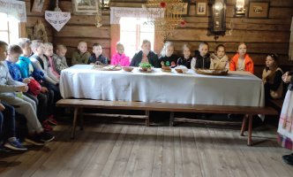 Saulėtą birželio rytą būrys 3 a klasės mokinių išsiruošė į Rumšiškes. Nutarėme pasinaudoti Kultūros paso paslauga ir aplankyti Lietuvos liaudies buities muziejų. Kada kelionės tikslas buvo pasiektas, keliuku per mišką patraukėme į senovinį Lietuvos kaimą. Čia apžiūrėjome klebono svirną, bažnyčią, senąją mokyklą, paštą. Pamatėme senas susisiekimo priemones – vežimus, karietas. Vėliau akmenimis grįstu keliuku pasileidome žemyn į Aukštaitiją. Čia mus pasitiko tautiniais rūbais apsirengusi šeimininkė.
