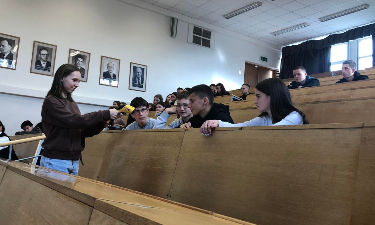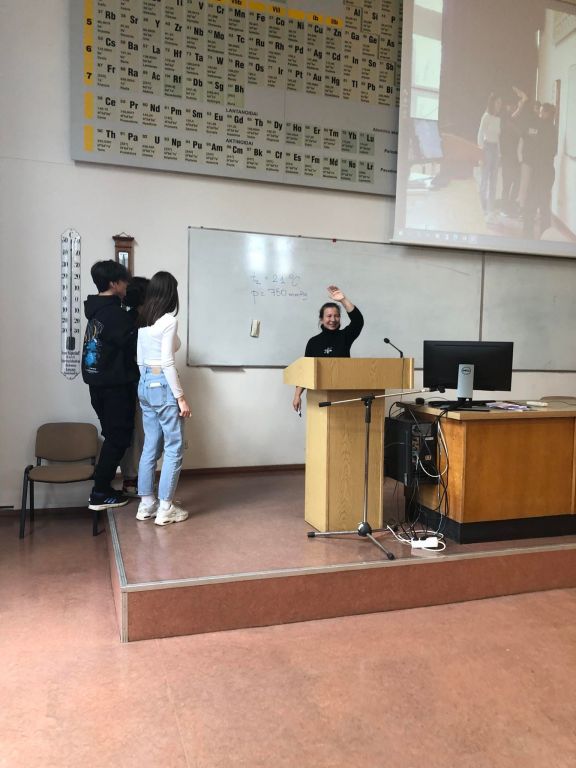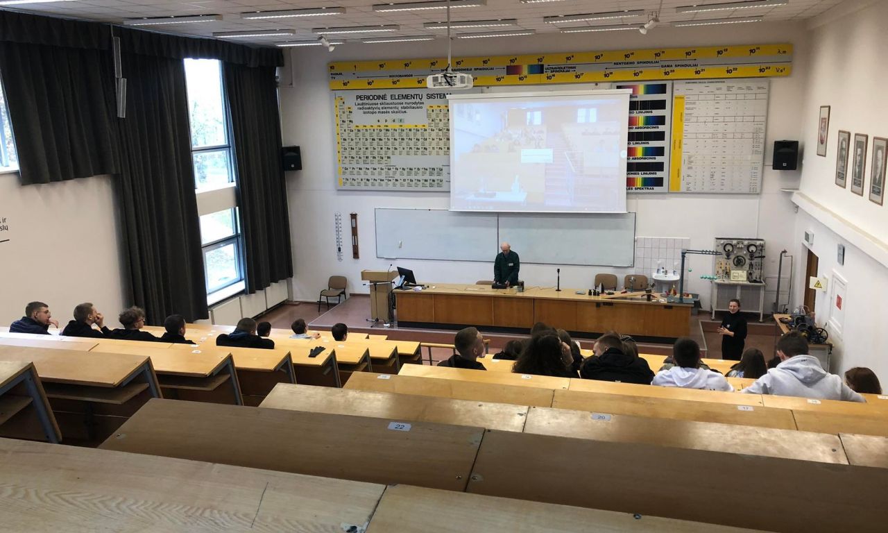 Pažintinės veiklos tęsėsi KTU Gamtos ir tiksliųjų mokslų fakultete. Mokiniams buvo sudaryta galimybė patiems dalyvauti fizikos eksperimentų pristatyme, bandymuose bei jų rezultatų aptarime.