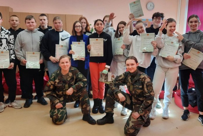 Paskutinę mokymų dieną gimnazistai praleido lauke. Ėjo į žygį, kurio metu įtvirtino visus išmoktus įgūdžius. Mokymų pabaigoje jaunuoliai gavo kurso baigimo pažymėjimus ir atminimo dovanėles. Šaunu, kad turėjo tokius puikius mokymus!