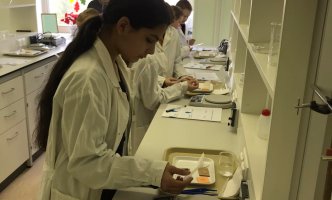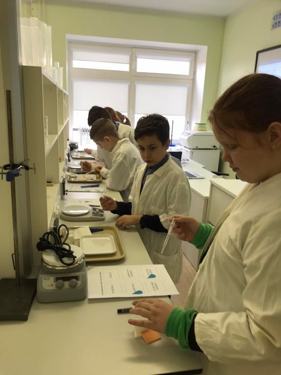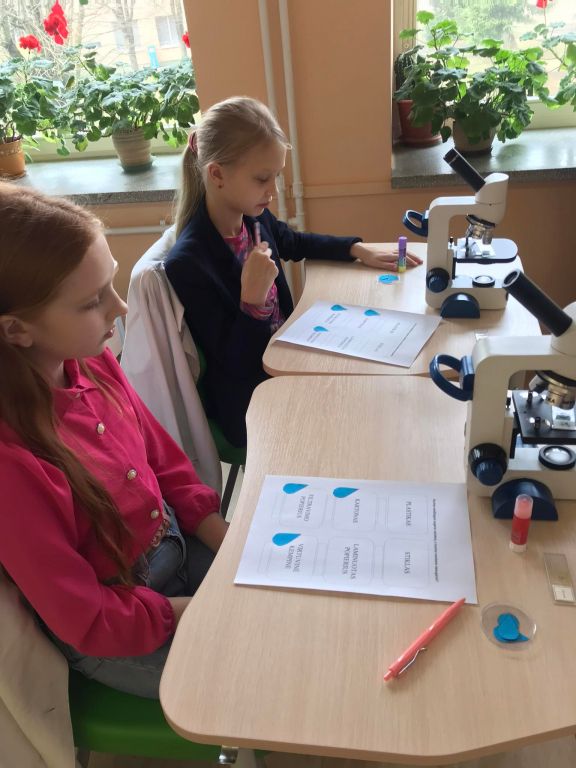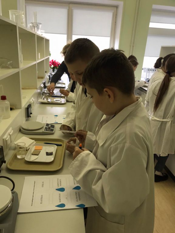 Laboratorijoje ketvirtokai nustatinėjo, kurios medžiagos „myli“ vandenį – yra hidrofilinės, o kurios „nemyli“ vandens – yra hidrofobinės. Mokėsi saugiai dirbti su laboratorine įrangą bei priemonėmis, mokėsi formuluoti spėjimą, analizuoti gautus rezultatus ir daryti išvadas.