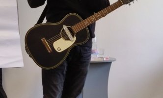 Eišiškių Vaikų bibliotekoje mus pasitiko be galo charizmatiškas ir malonus žmogus su gitara. Vaikai dainavo, netgi trumpam tapo kūrėjais – kūrė bendrą iliustraciją, piešė povandeninį laivą – rožinį paršelį, o susitikimui artėjant į pabaigą, visi gavo rašytojo autografą ir apipylė menininką klausimais...apie jo pomėgius, kūrybą, vaikystę, svajones...ir t.t. .