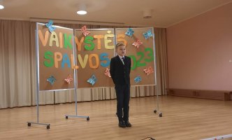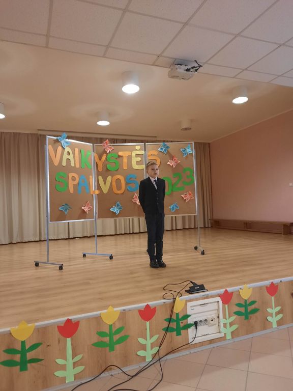 Konkurso „Vaikystės spalvos“ tikslai - skatinti pradinių klasių mokinius domėtis vaikų literatūra, puoselėti meilę gimtajam kraštui, lietuvių kalbai. Mažieji skaitovai atmintinai skaitė po vieną pasirinkto žanro kūrinį. Tema – Vaikystė. Konkurse dalyvavo 28 pradinukai: 5 pirmokai, 9 antrokai, 7 trečiokai, 7 ketvirtokai.