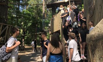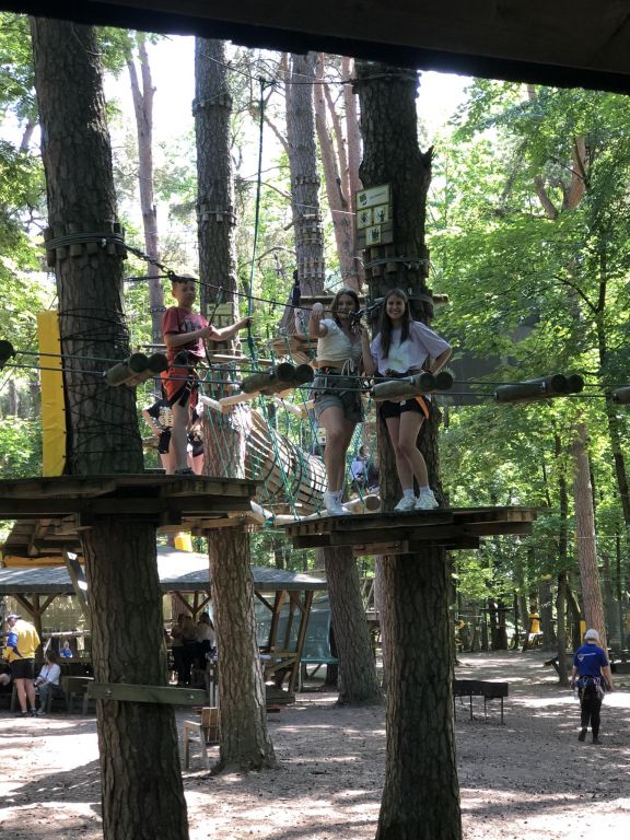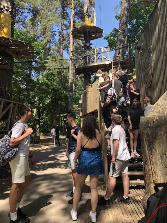 Po veiklų universitete išvyka tęsėsi Vilniaus UNO PARKE, kur mokiniai surado atokvėpį, aštrius įspūdžius, pasimėgavo pramogomis bei susipažino su laipiojimo medžiuose filosofijos atspindžiu: laisve gyventi klausant savo širdies, drąsa peržengti savo ribas ir pasitikėti pasauliu aplink, augti ne tik įveikiant kliūtis, bet ir priimant tai, kas stipriau už mus.