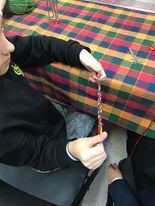 Lapkričio 17 d. ketvirtokai vyko į Dargužių amatų centrą. Ten, pasinaudodami Kultūros paso paslauga, iš siūlų rišo juostas. Edukatorė papasakojo, kaip juostas rišdavo ir ausdavo seneliai anksčiau, kokiais tikslais juostas buityje naudojo. Tada mokinius pakvietė išbandyti juostų rišimo amato. Veiklos pradžia pasirodė visai nelengva, nes reikėjo suprasti, kaip siūlus narstyti, skirti dešinę pusę nuo kairės, o siūlai tarp pirštų painiojosi. Juostą surišti prireikė laiko, kantrybės ir mokytojų pagalbos.