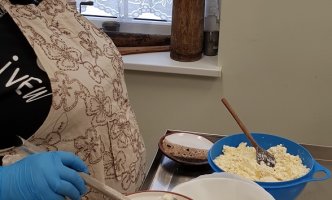 Suslėgtą sūrį vaikai patys išsiėmė iš sūrmaišio, susipakavo, paragavo, ir dar parsivežė namo.