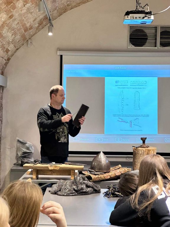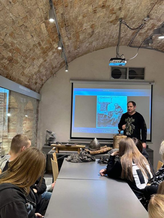 Gruodžio 27d. IGa klasės gimnazistai naudodamiesi Kultūros paso paslauga, vyko į Alytaus kraštotyros muziejų. Toks edukacinis užsiėmimas – vienintelis Lietuvoje! Seniausiuose Alytaus miesto rūsiuose, menančiuose XVI a., gimnazistai susipažino su senovės baltų karyba, gyvensena ir žiedinių šarvų gamyba. Įdomi pažintis su žiediniais šarvais nebuvo tik teorinė – buvo galima juos paliesti, apsirengti, ir ... pačiam pasigaminti. Tai buvo tikrai neįtikėtina patirtis.