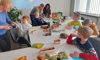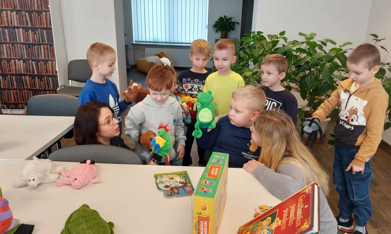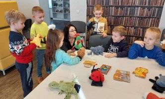 Vasario 28 d. priešmokyklinio ugdymo grupės vaikai lankėsi Eišiškių miesto vaikų bibliotekoje. Bibliotekos darbuotojos mus šiltai sutiko. Jos pasakojo apie biblioteką, pristatė knygeles, kurios būtų įdomios priešmokyklinukams. Vaikai su pirštininėmis lėlėmis vaidino, žaidė, kūrė savo pirmąsias knygeles. Valandėlė prabėgo greitai ir nepastebimai. Grįžome puikiai nusiteikę, pilni įspūdžių.