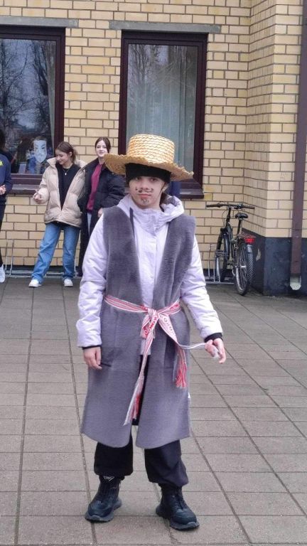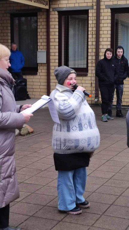 Vasario 13 d. šventėme smagias Užgavėnes. Linksma muzika į gimnazijos kiemą sukvietė pasipuošusius pačių padarytomis kaukėmis pradinukus ir jų mokytojus. Visi kartu žaidėme smagius žaidimus, triukšmavome ir gąsdinome žiemą.